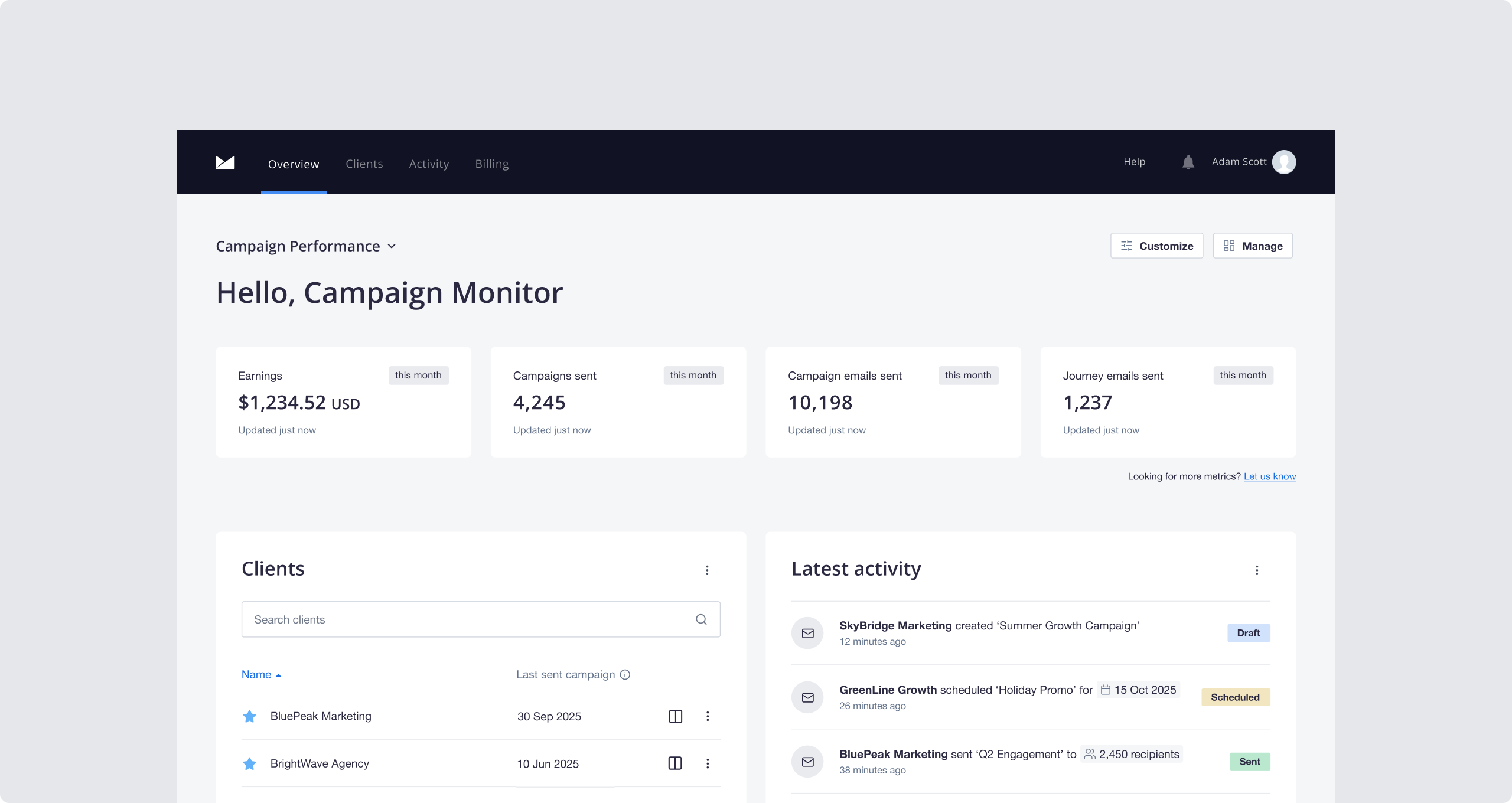 Campaign Monitor is an email marketing platform that gives agencies the tools they need to manage clients and campaigns in one place.