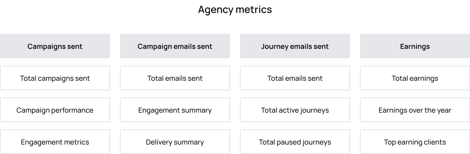 How might we deliver a comprehensive suite of metrics, at both the client and account level, that helps agencies measure, understand, and monitor performance in one place?