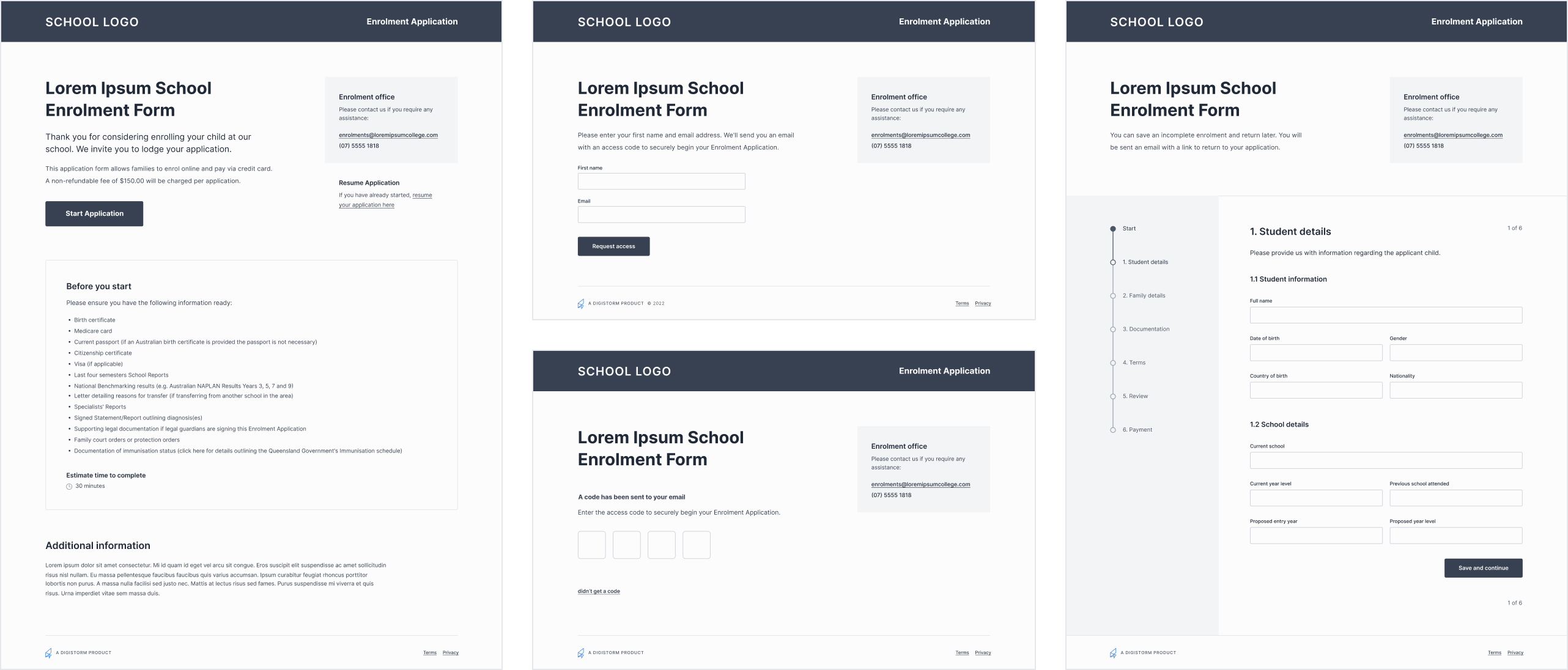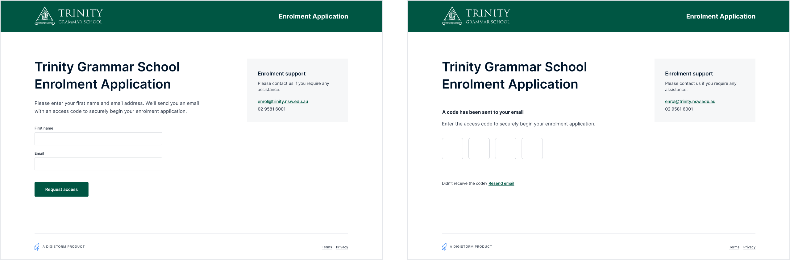 Schools gained customisable landing pages with the ability to upload branded imagery and custom backgrounds, allowing them to differentiate their forms and present a professional experience to prospective families. Enhanced verification flows for new and returning applicants reduced spam without adding friction for legitimate applicants.